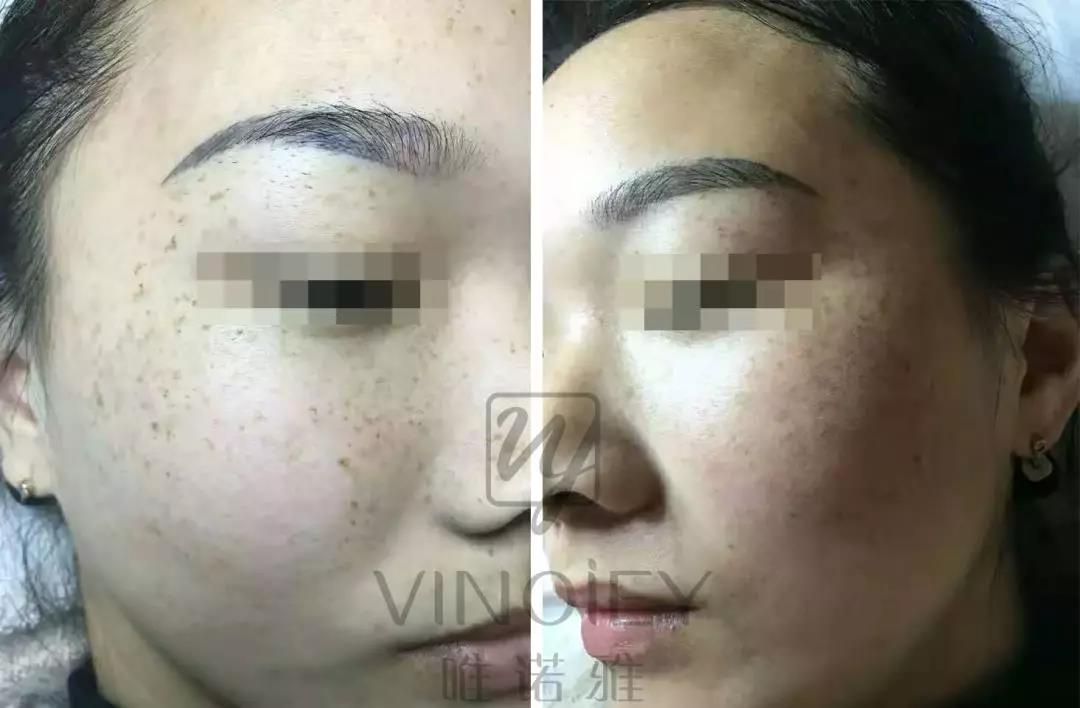 经过唯诺雅的老师精心指导使用方式,用了一段时间后,斑点明显的减少,皮肤也变得水润有光泽了。