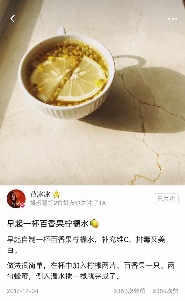 首先我们来说说网红百香果柠檬,这个简直是我的夏日必备,每天都有喝,美不美白先不说,感觉特别排毒。fbb自己发过美白秘籍就是百香果柠檬水。制作方法炒鸡简单,简直是手残党的福音~