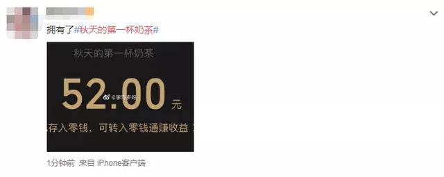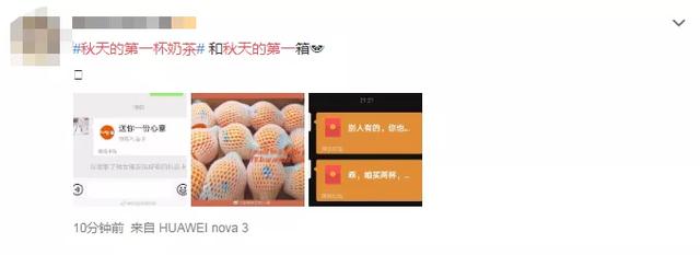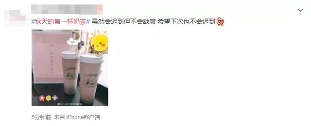有网友说是:“今年的秋天比以往来的早一些,所以今年这个秋天的第一杯奶茶安排一下”
