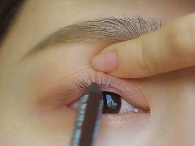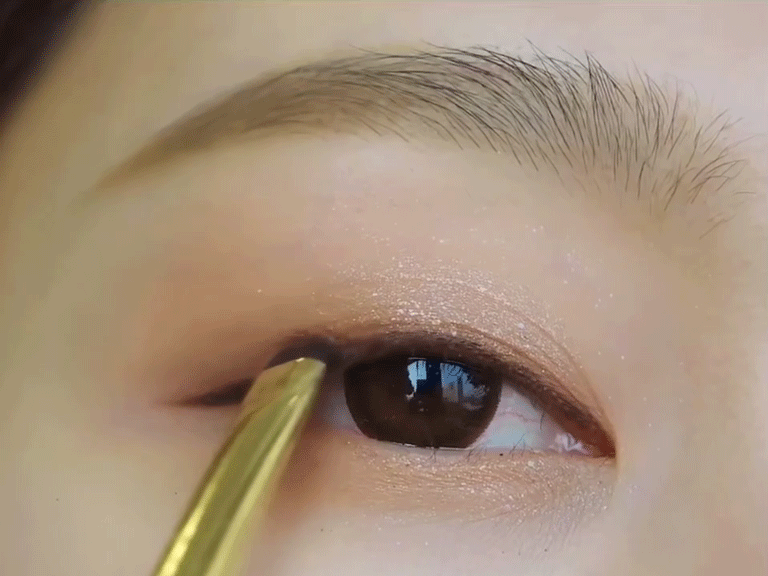 tips:用深棕色眼影在眼线的基础上叠加晕染过度一下会更自然