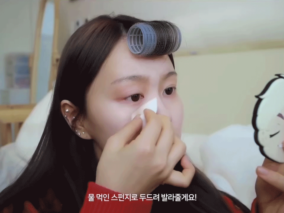 tips:可以选择海绵或者美妆蛋,在温水中浸泡,捏干再用,湿用比干用服帖很多~优质的底妆,是少量多次上妆,拍开,千万不要一次性上很多粉哦。