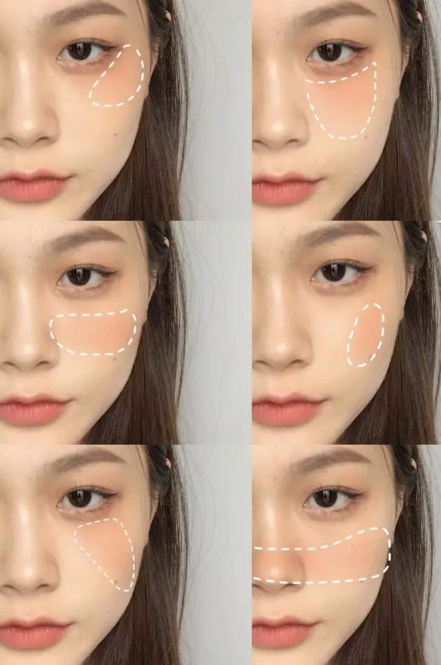 腮红就用桔调的,记得横着打哟,并在鼻头擦一点。