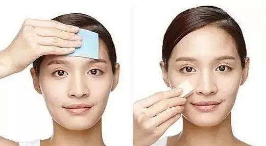 洗完脸后,等5分钟,用吸油面纸按压额头、鼻子、下巴这些较易出油部位。