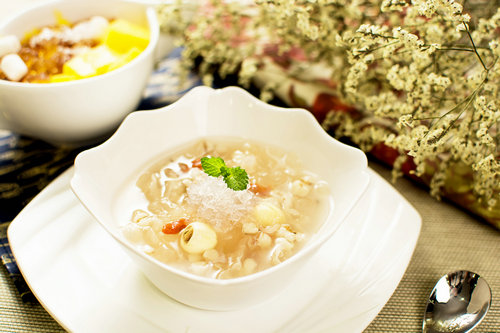 制法:将以上诸味入锅用文火煮好,再加点蜂蜜调味即成。