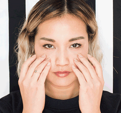 step3:用指腹画圈按压嘴角到锁骨、嘴角到鼻翼、眼周到耳下范围。