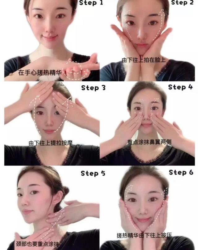 这是使用精华的关键手法,一般的护肤品是涂抹,但是精华是需要用手轻轻拍脸部,以达到把精华涂抹全脸的效果,这也是很多人手法用错的地方。